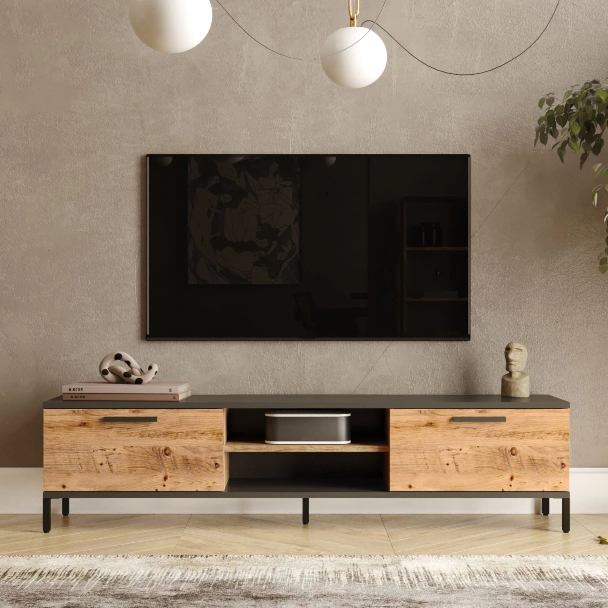 In And OutdoorMatch TV-Möbel Lucio – 160 x 35 x 39 cm – Holzfarbe und Anthrazit – Spanplatte und Stahl – stilvolles Design