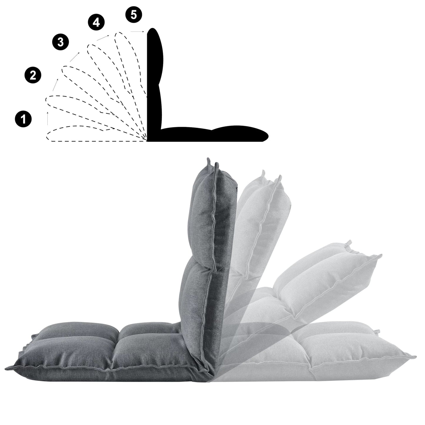 Ist Ihnen ein Standardstuhl zu langweilig, zu hart oder zu statisch? Diese vielseitige, tragbare, leichte Liege eignet sich perfekt zum Stehen auf dem Boden und bietet außerdem eine gute Unterstützung für Rücken und Kopf. Dieser Loungesessel mit Bodensitz ist ideal zum Zurücklehnen (5 Positionen), Entspannen, Lesen, Fernsehen, Spielen ...
