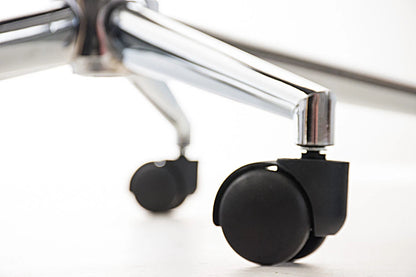 Ein bequemer Stuhl, der jedem Raum eine modische Note verleiht. Die rechteckige Sitzfläche und die optisch ansprechenden Ziernähte machen den Arbeitshocker überall gekonnt sichtbar. Die gute Polsterung und die feine, pflegeleichte Kunstlederpolsterung sorgen für optimalen Komfort, auch bei längerem Aufenthalt. Das kompakte Grundgestell und die fünf Leichtlaufräder garantieren zudem einen sicheren Stand und sorgen dafür, dass Sie leicht und locker über Hartböden oder Teppichböden rollen können. Die Sitzhöhe ist über den Hebel unter dem Sitz stufenlos verstellbar.