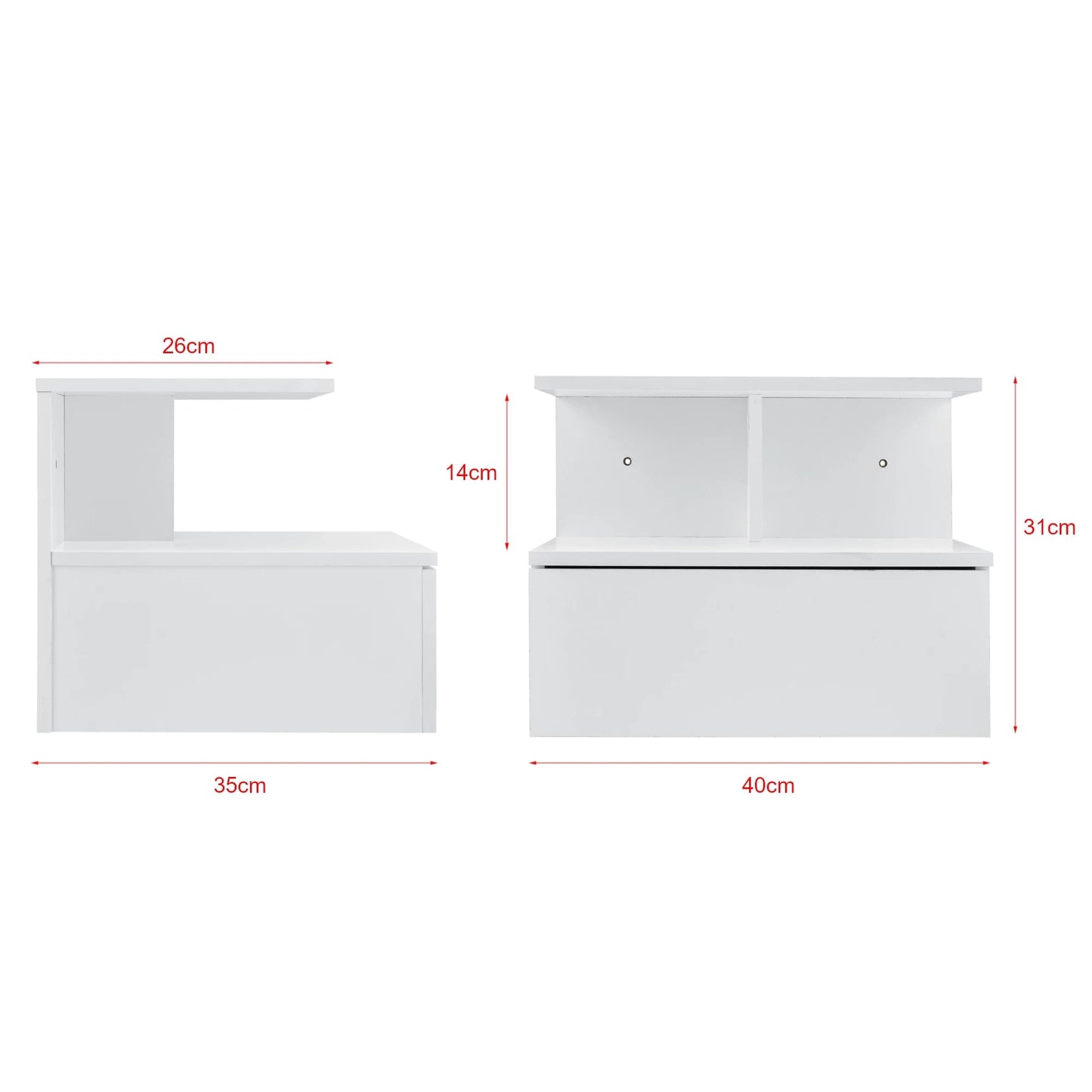 In And OutdoorMatch Schwebender Nachttisch Millie – Mit Schublade – 40 x 35 x 31 cm – Weiß – Spanplatte – Stilvolles Aussehen