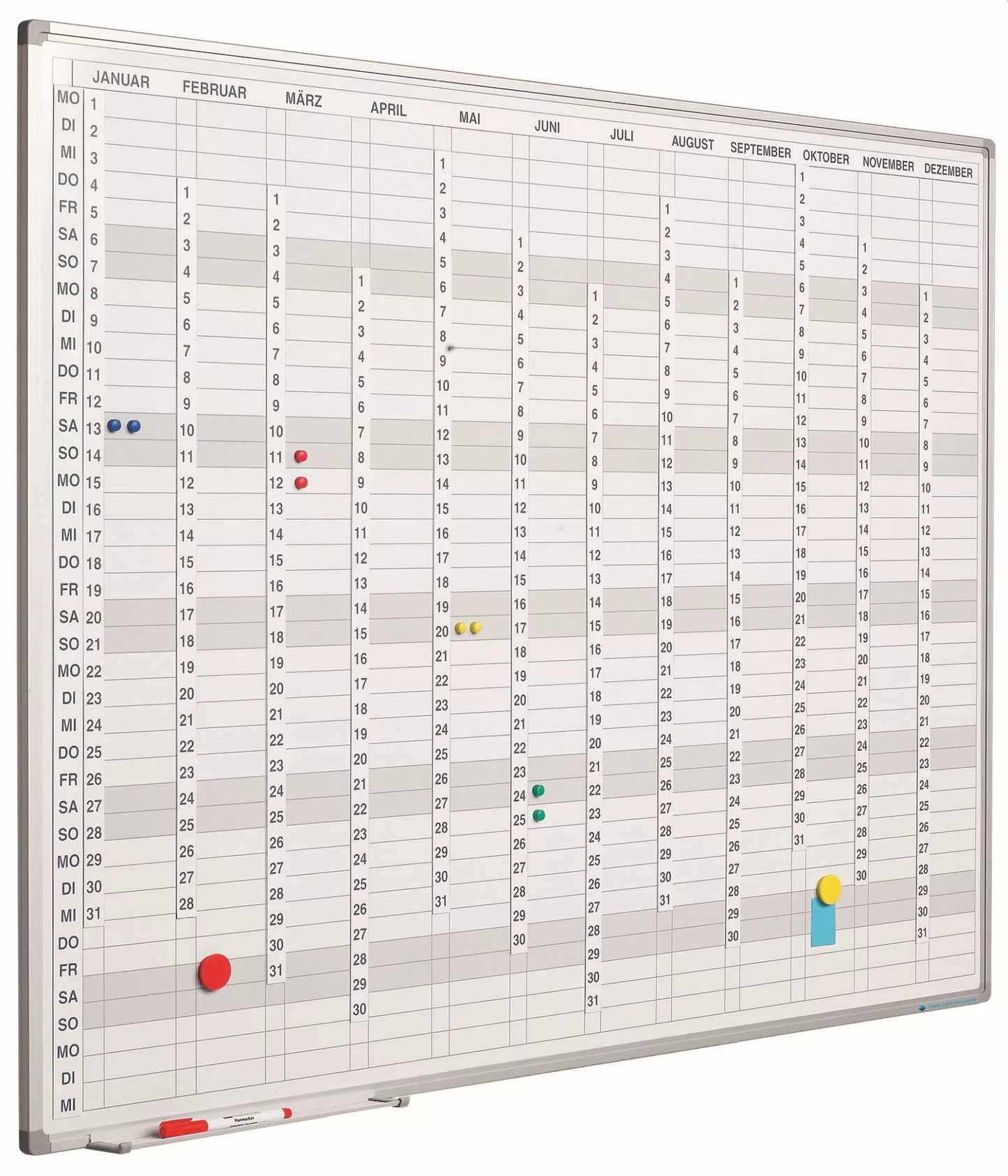 Whiteboard PRO Fermin - Emaille-Stahl - Wochenplaner - Monatsplaner - Jahresplaner - Magnetisch - Weiß - inkl. Monats-/Tag-/Zahlenstreifen - Deutsch - 90x120cm