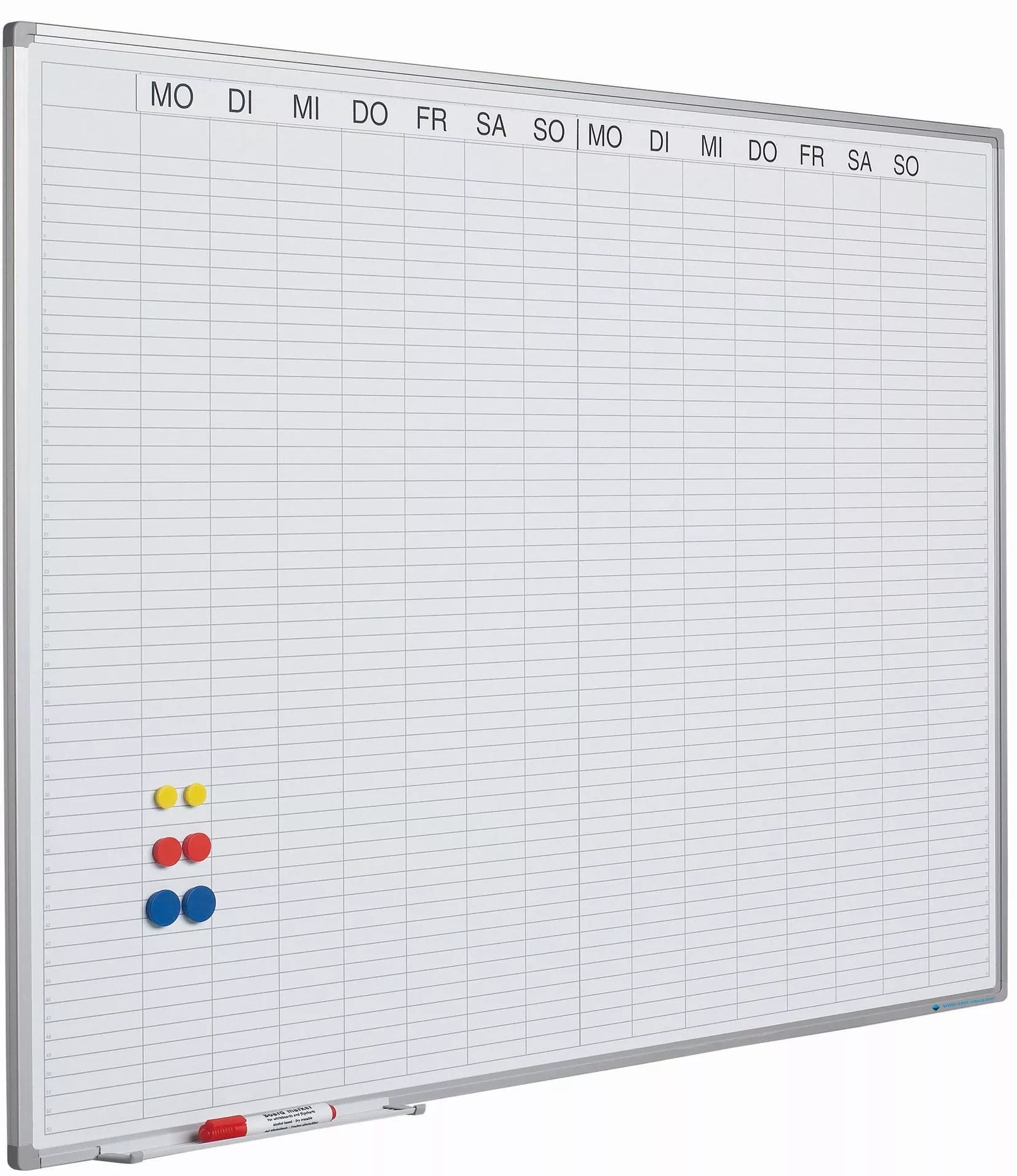 Whiteboard PRO Randolph – Emaille-Stahl – Wochenplaner – Monatsplaner – Jahresplaner – magnetisch – Weiß – Deutsch – 90 x 120 cm