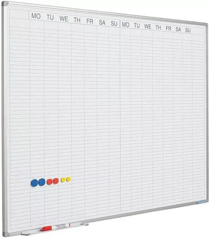 Whiteboard PRO Sylvester – Emaille-Stahl – Wochenplaner – Monatsplaner – Jahresplaner – magnetisch – Weiß – Englisch – 60 x 90 cm